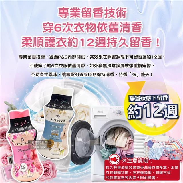 比香水更柔和的高質感香氣,穿6次衣物依舊清香,約12週持久留香!