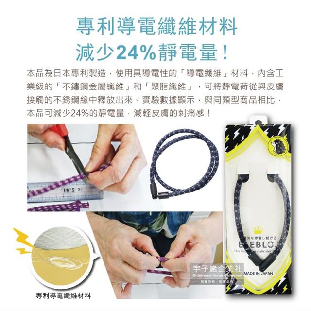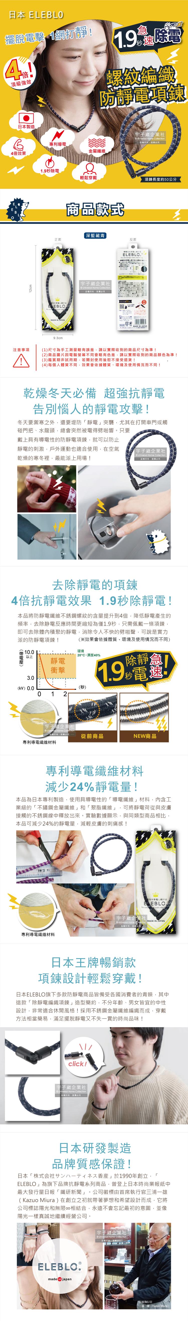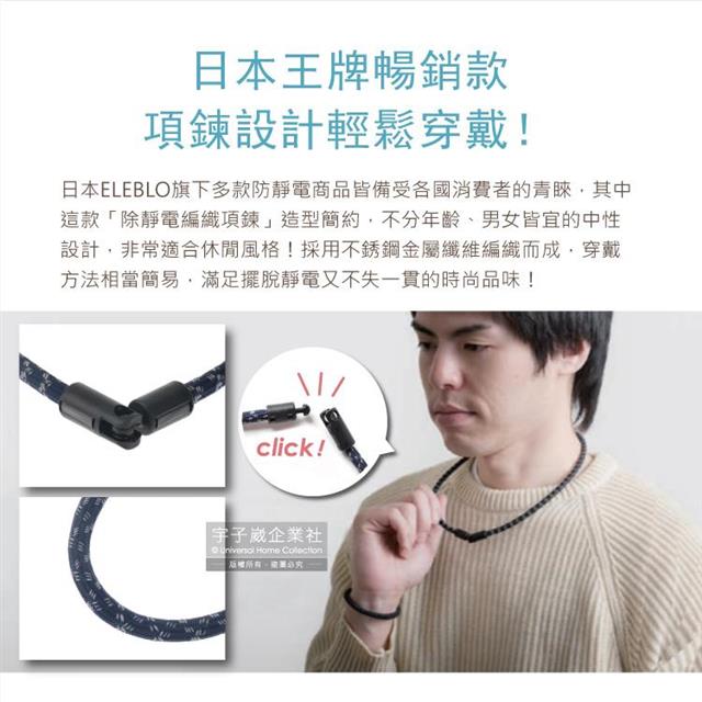 日本ELEBLO-頂級4倍強效螺紋編織防靜電項鍊-深藍藏青色1入/盒(1.9秒急速除靜電)