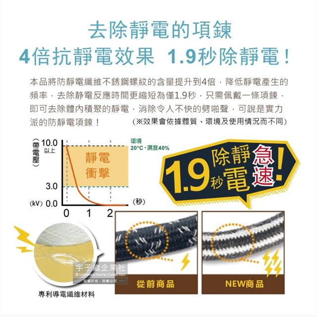 ●專利導電纖維材料,4倍抗靜電效果,1.9秒除靜電!