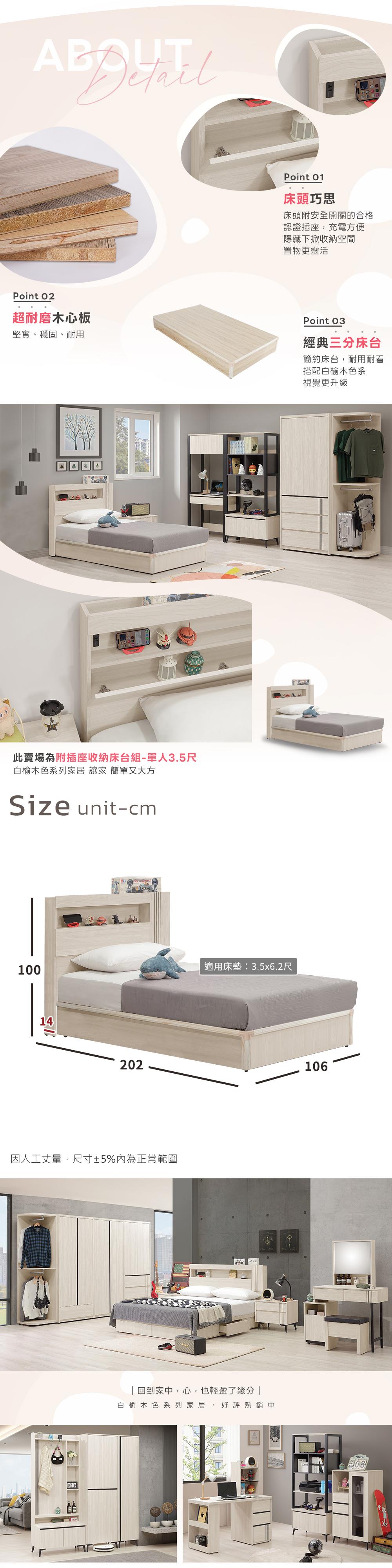 整組商品:3.5尺床頭片 x 1 + 3.5床台 x 1