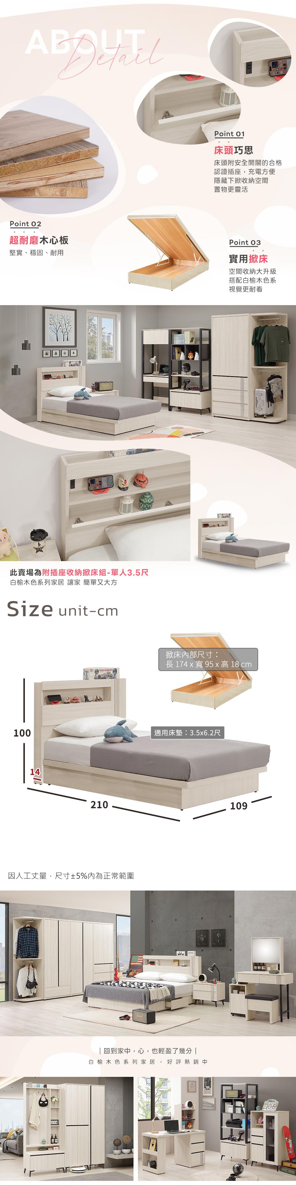 喜家居附插座收納掀床組-單人3.5尺(2542)