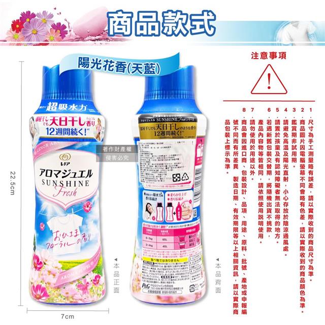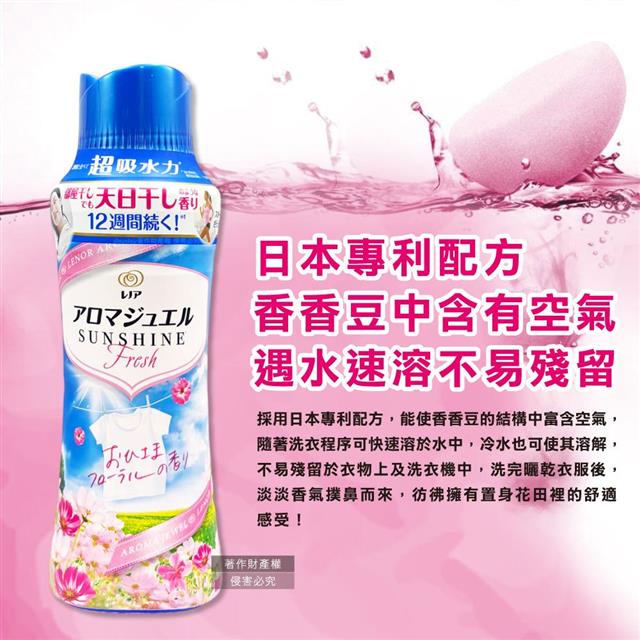 日本P&G-Lenor芳香寶石系列超吸水力顆粒香香豆470ml/瓶-陽光花香(天藍)(衣物持香約12週/室內晾曬香氛豆/毛巾柔順留香珠/織品除悶臭體汗味)