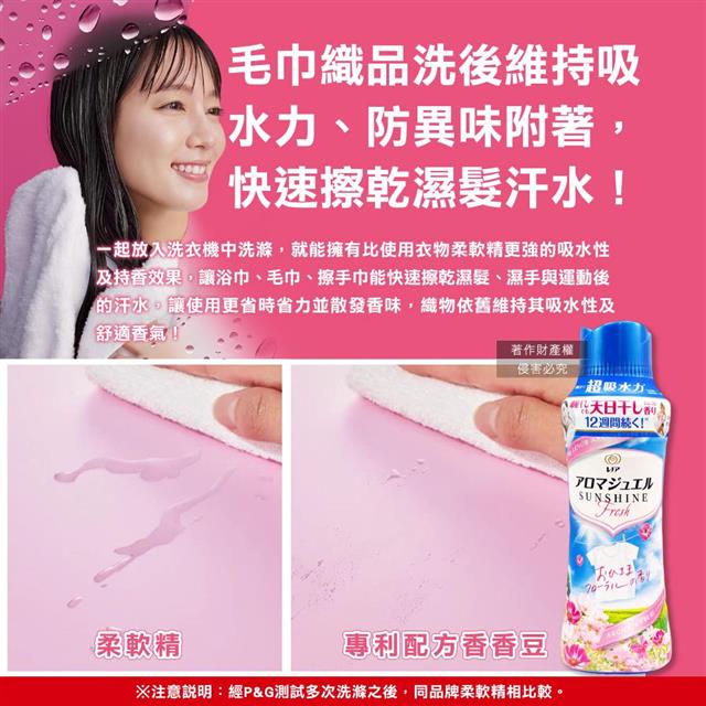 ●遇水速溶,毛巾織品洗後維持吸水力、防異味附著,快速擦乾濕髮汗水!