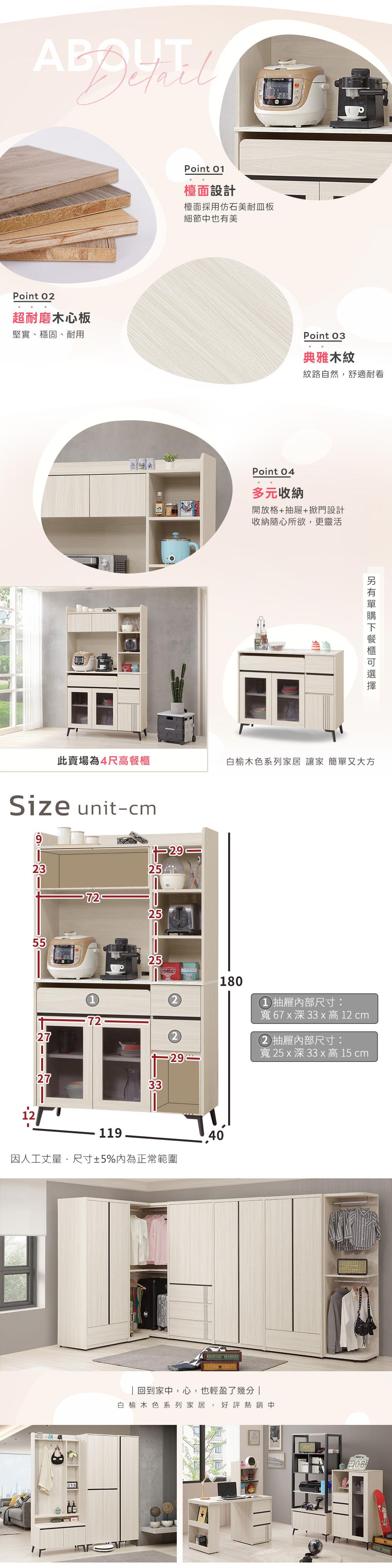 尺寸:寬 119 x 深 40 x 高 180 公分