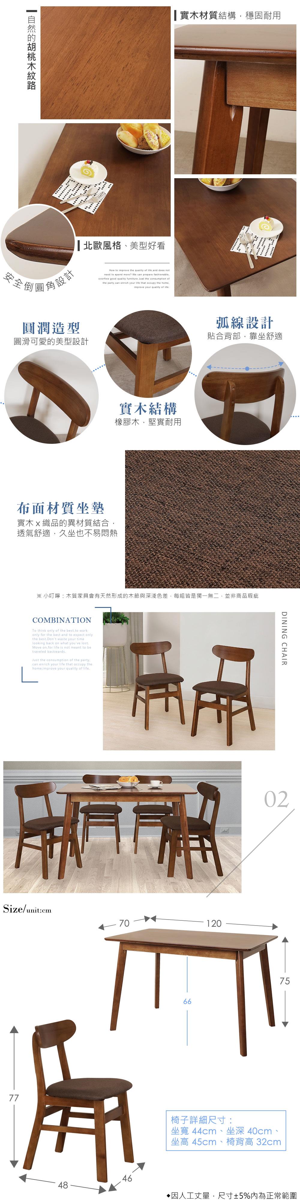 喜家居120cm實木餐桌椅組(胡桃色)(2312-22)