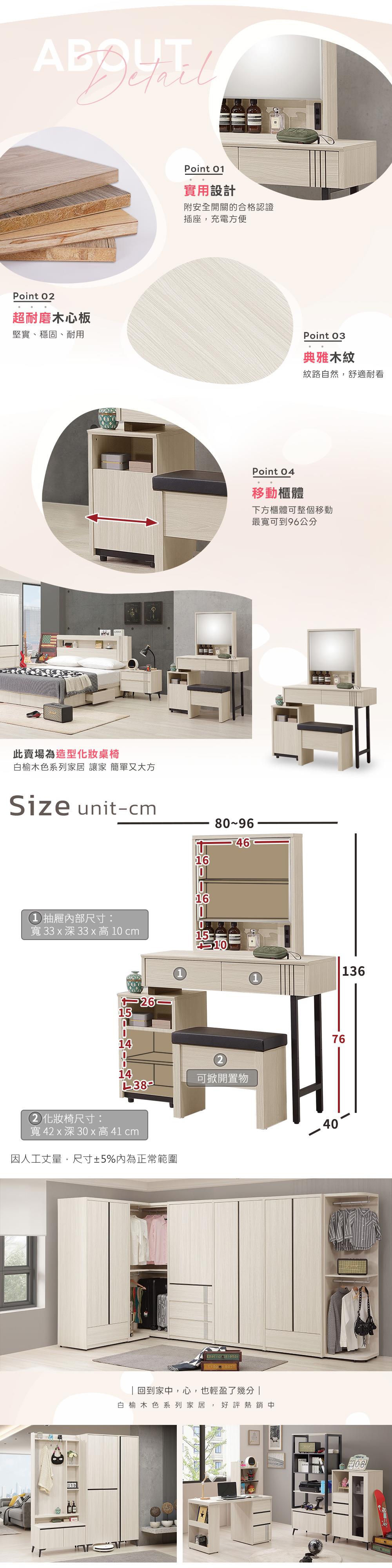 尺寸:寬 80~96 x 深 40 x 高 136 公分