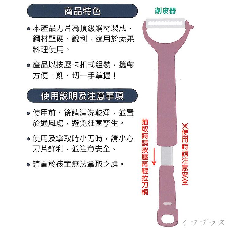 它巧妙結合了削皮與切割的功能,讓您在處理各類水果和蔬菜時,輕鬆自如。無論是剝去堅硬的外皮,還是精確地切割成片,採用不鏽鋼刀片使用壽命長,使用完畢易於清洗,舒適握柄好拿好握,廚房好幫手。