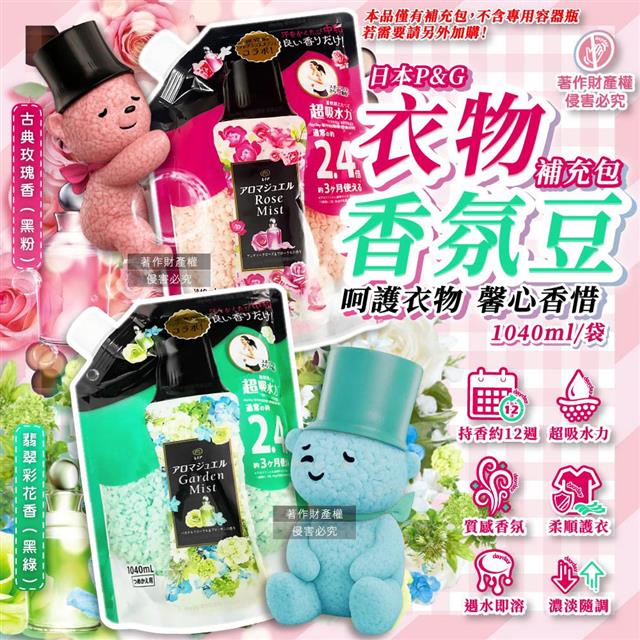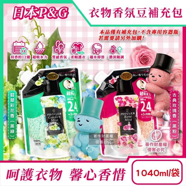 日本P&G-Lenor芳香寶石系列超吸水力顆粒香香豆補充包1040ml/1袋(長效留香約12週/毛巾運動服消臭柔軟劑/室內晾曬防臭/全機型適用洗衣香氛珠)