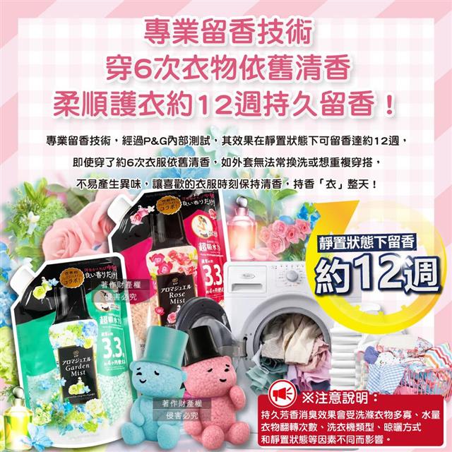 比香水更柔和的高質感香氣,穿6次衣物依舊清香,約12週持久留香!