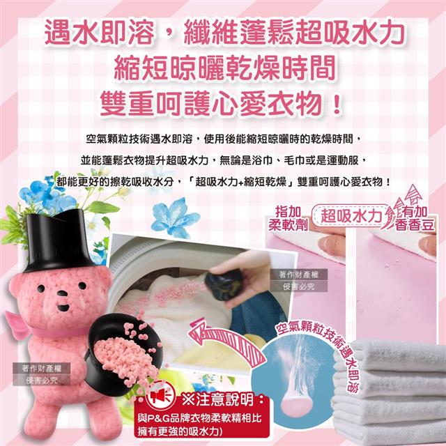 ●纖維蓬鬆超吸水力,縮短晾曬乾燥時間,直立、滾筒式洗衣機皆適用!