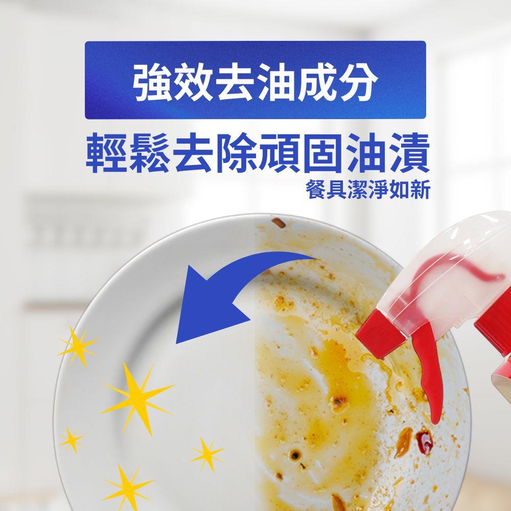 快速去油:這款洗滌噴霧能在幾秒鐘內強力去除頑固油漬。