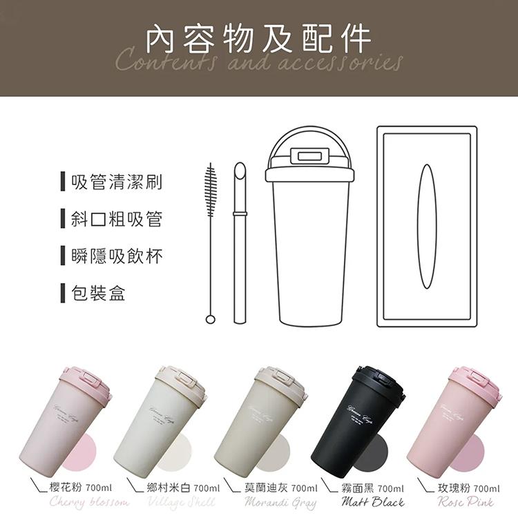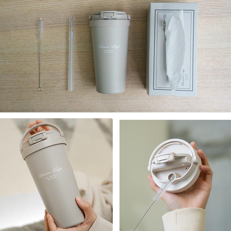 GREEN CUP 芊杯304不鏽鋼陶瓷手提直吸飲兩用保溫杯-700ml-2支