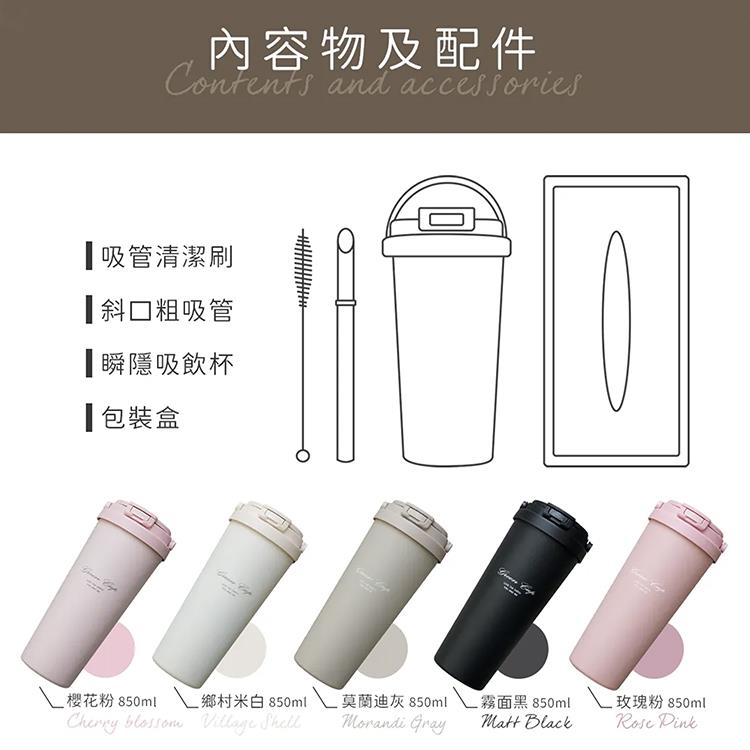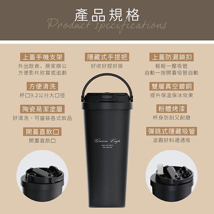 GREEN CUP 芊杯304不鏽鋼陶瓷手提直吸飲兩用保溫杯-850ml-2支
