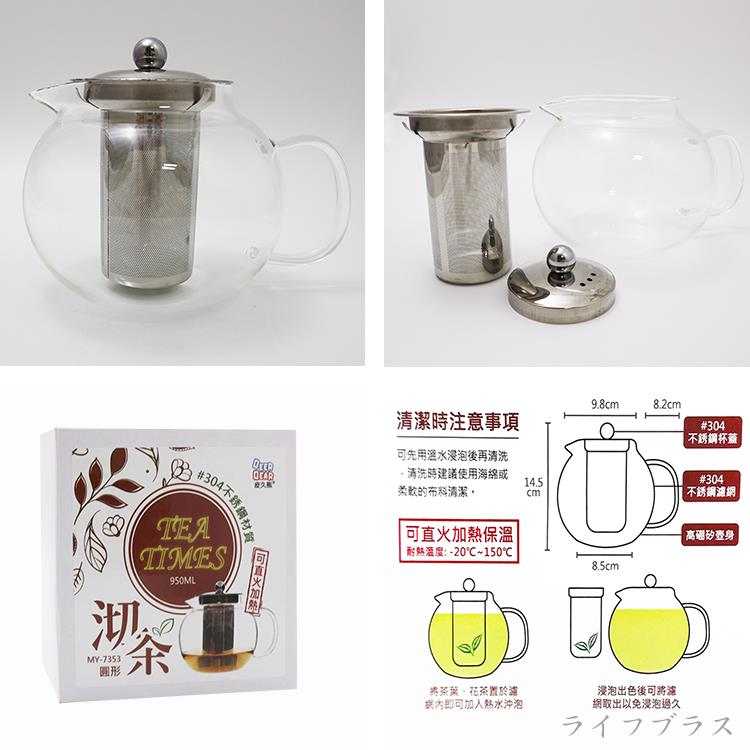 沏茶可直火玻璃濾泡茶壺-950ml-圓形-1入