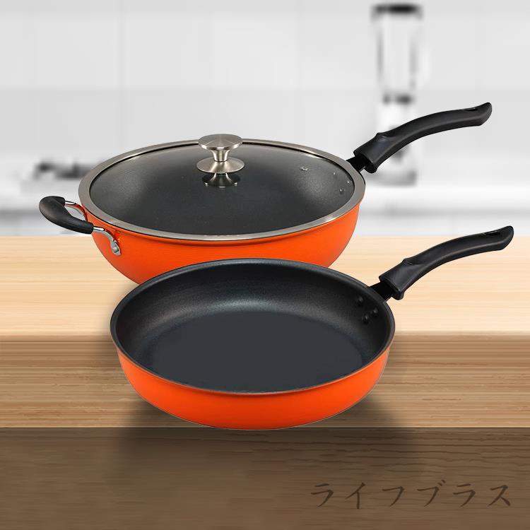 巧藝鍋航鈦備長炭遠紅外線不沾炒鍋-33cm-含蓋x1支+平底鍋-32cm-無蓋x1支