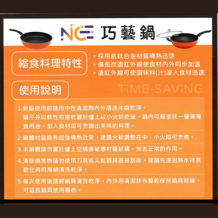 在廚房中,擁有一款優質的鍋具是烹飪成功的關鍵,此款鍋具台灣製造品質安心,通過SGS檢測品質安心,採用航鈦合金材質精工製作,不卡油垢好清洗,傳熱快且均勻,採用備長炭遠紅外線耐用不沾塗層處理,達到不沾鍋身抗黏OK,不易粘黏食材,煎煮食材只需少許油 ,省油,省瓦斯,料理食物好鍋具,適用瓦斯爐、電陶爐、紅外線爐、鹵素爐、電爐,不適用IH電磁爐,讓您輕鬆掌控每一道料理。