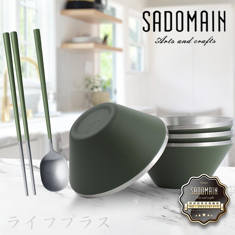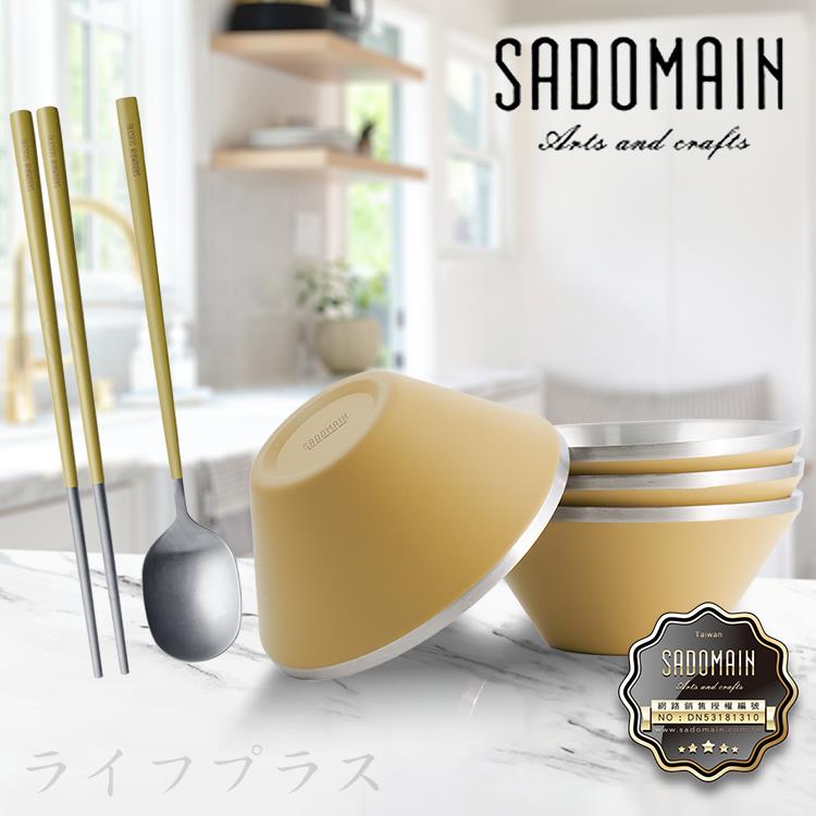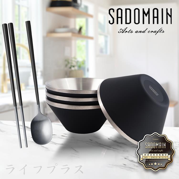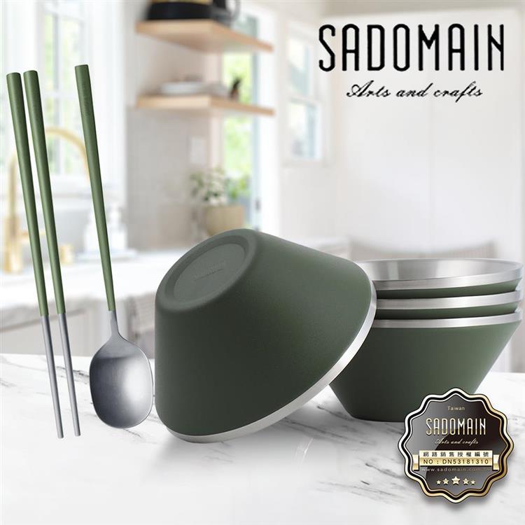 仙德曼雙層304不鏽鋼笠形碗-4入+316不鏽鋼餐具組-4套入