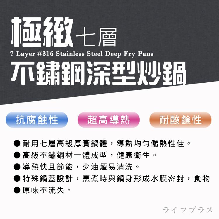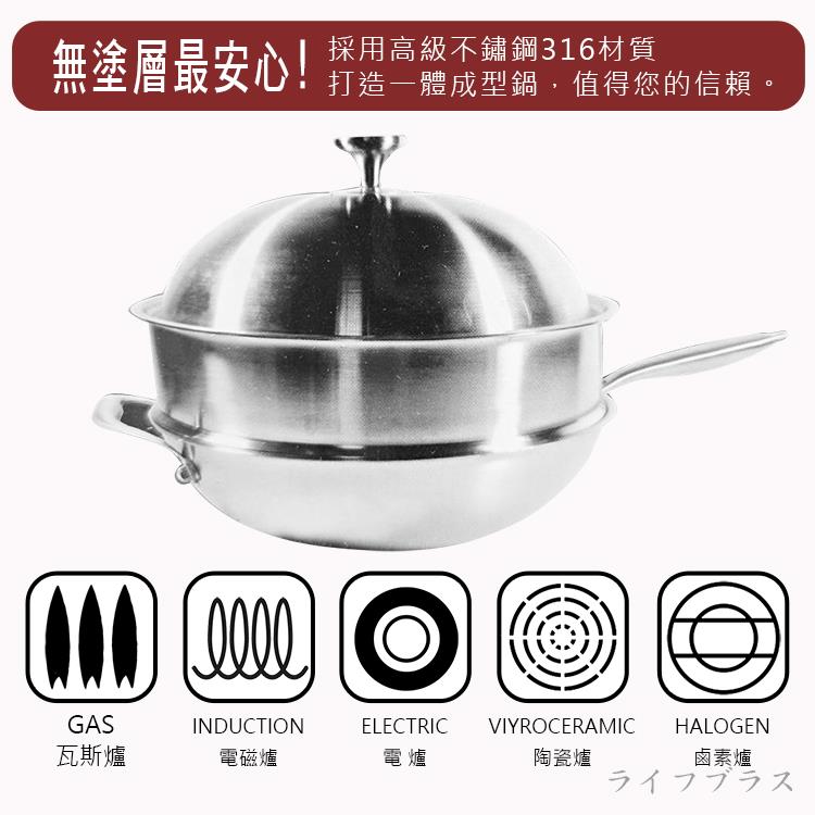 • 臺灣製造品質保証,通過SGS檢驗合格,採用#316不鏽鋼精工製造,內層#316不鏽鋼板製造,外層導磁不鏽鋼,中間五層合金,鍋身厚度2.7mm,傳熱快速,導熱更均勻,深型設計只需中小火即可達到抗黏性及不沾效果,具高儲熱功能容易清洗,適用瓦斯爐、電磁爐、電爐、陶瓷爐,附帶蒸格,讓您輕鬆享受蒸煮料理。