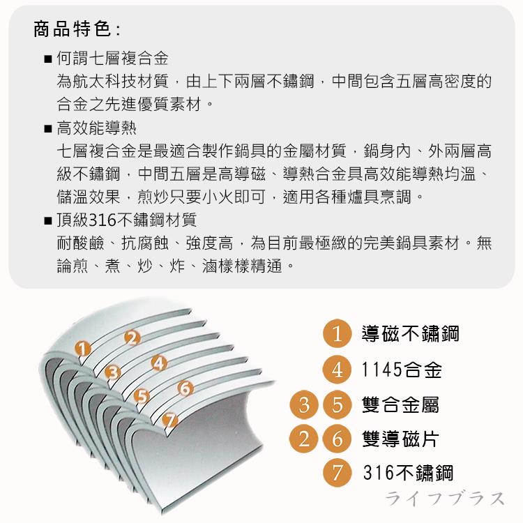 臺灣製造精品品質通過SGS檢驗合格 ,內層採用316不鏽鋼耐酸鹼抗腐蝕 耐用複合金鍋身厚度2.7mm無塗層最安心