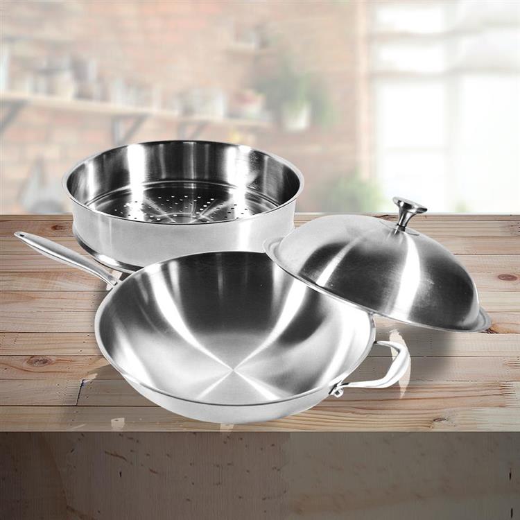 Maluta極緻七層不鏽鋼深型炒鍋-單把-36cm+蒸格-1入組