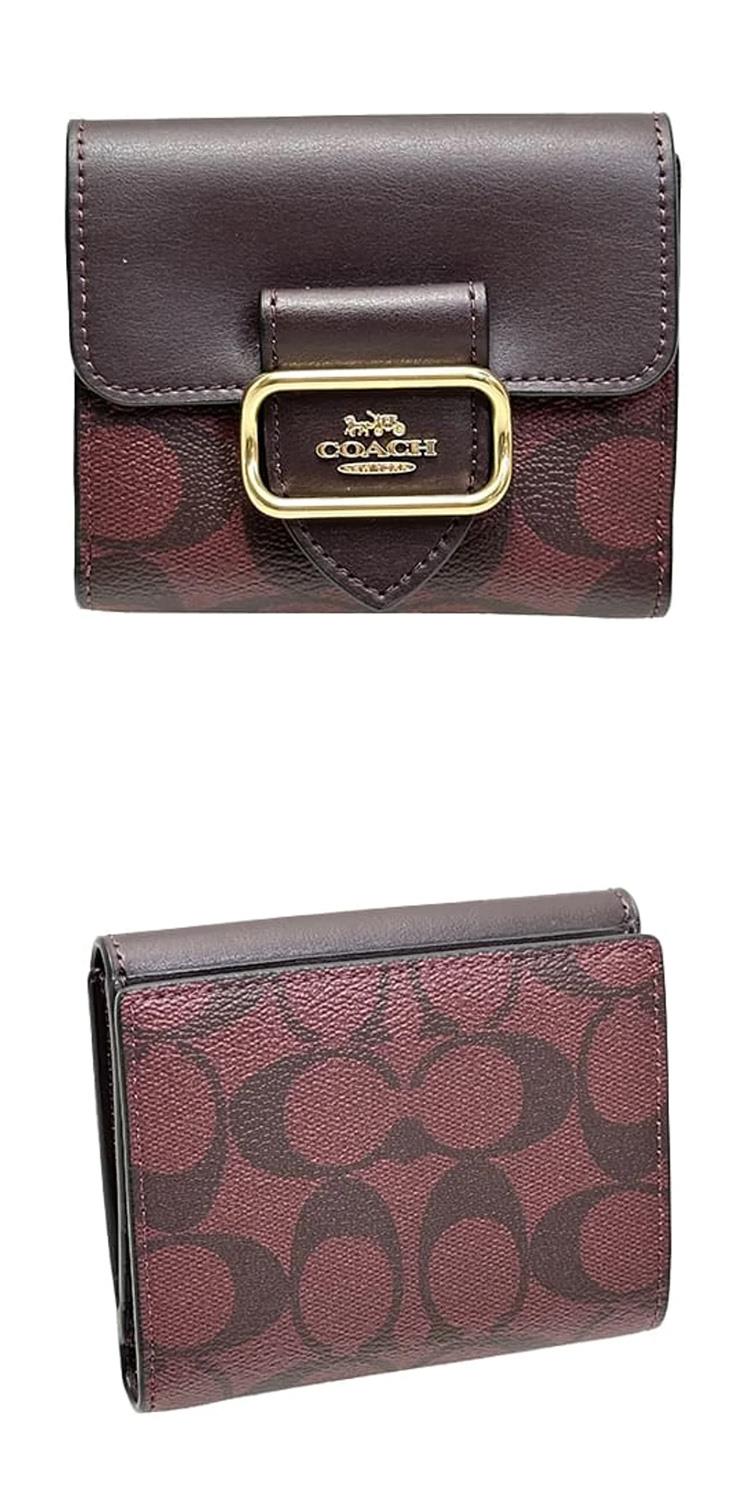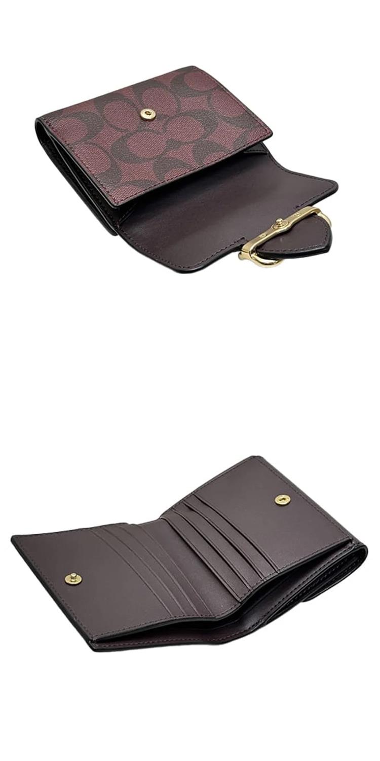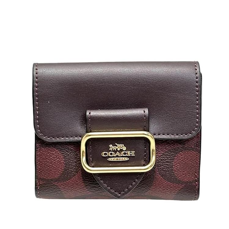 COACH 專櫃款撞色按釦短夾-咖啡酒紅