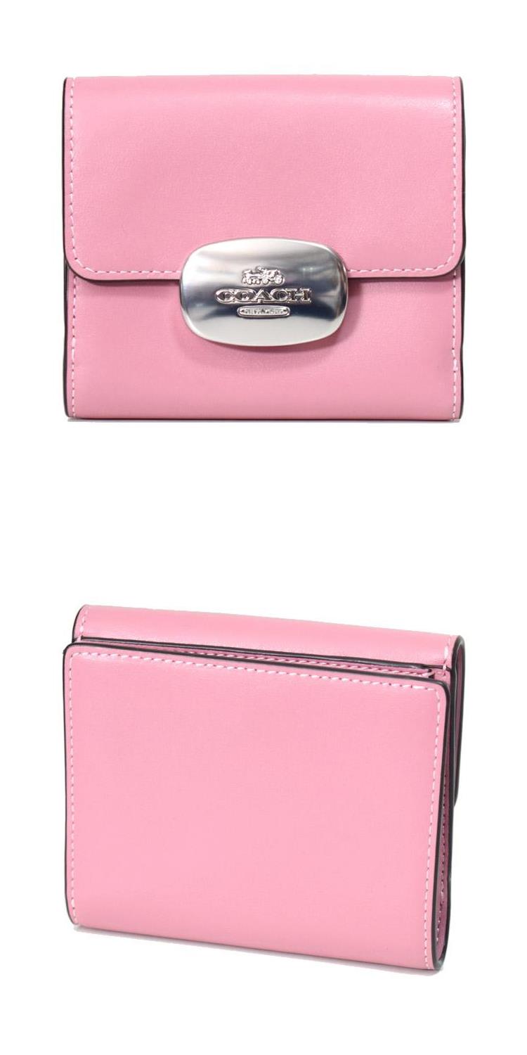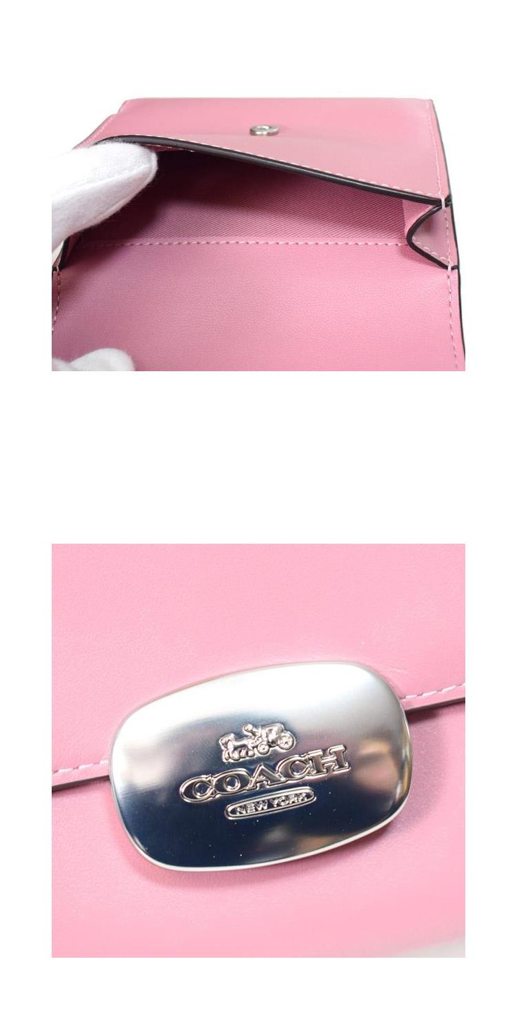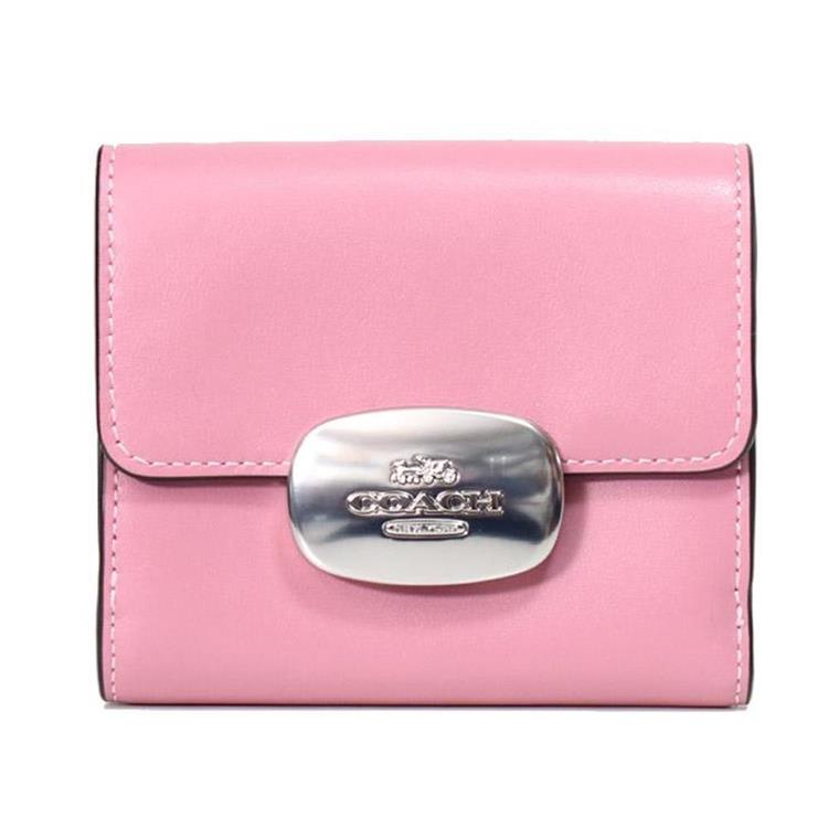 COACH 專櫃款牛皮素色按釦短夾-粉紅