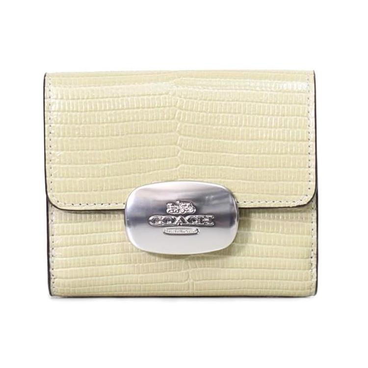 COACH 專櫃款鱷魚紋素色按釦短夾