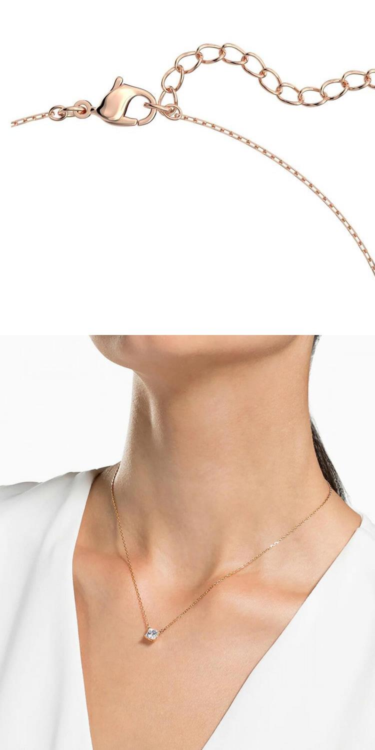 SWAROVSKI 方型白鑽項鍊-玫瑰金