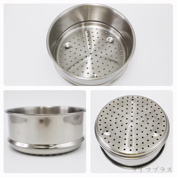 探索烹飪的無限可能,是您廚房的理想夥伴,內層採用加厚304不鏽鋼板製造,中間合金,外層導磁不鏽鋼,鍋身內刻度設計,傳熱快速,導熱更均勻,深型設計只需中小火即可達到抗黏性及不沾效果,具高儲熱功能容易清洗,適用瓦斯爐、電磁爐、電爐、陶瓷爐,讓您輕鬆享受蒸煮料理。