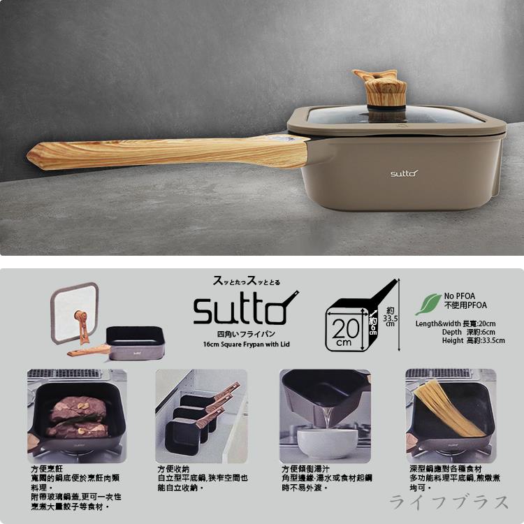 SUTTO方形四角深型不沾平底鍋-20cm-附蓋-1支組