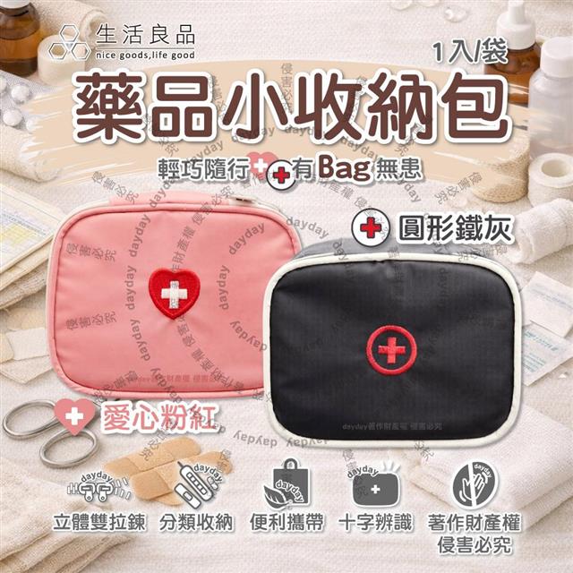 生活良品-大開口雙向拉鍊夾層隨身便攜醫藥品分類立體小收納包1入/袋(本品不含醫療用品/藥物保健品整理袋/急救避難醫療包/旅行盥洗化妝包)