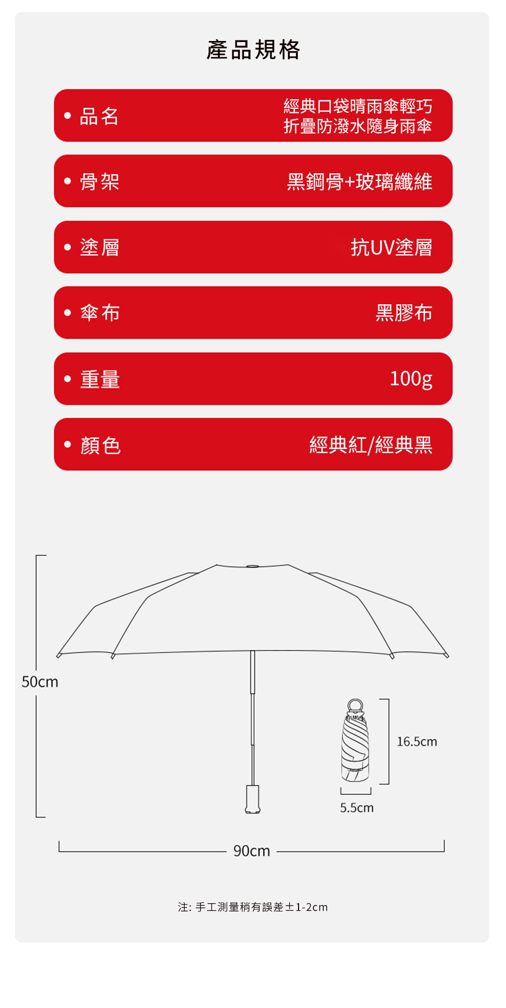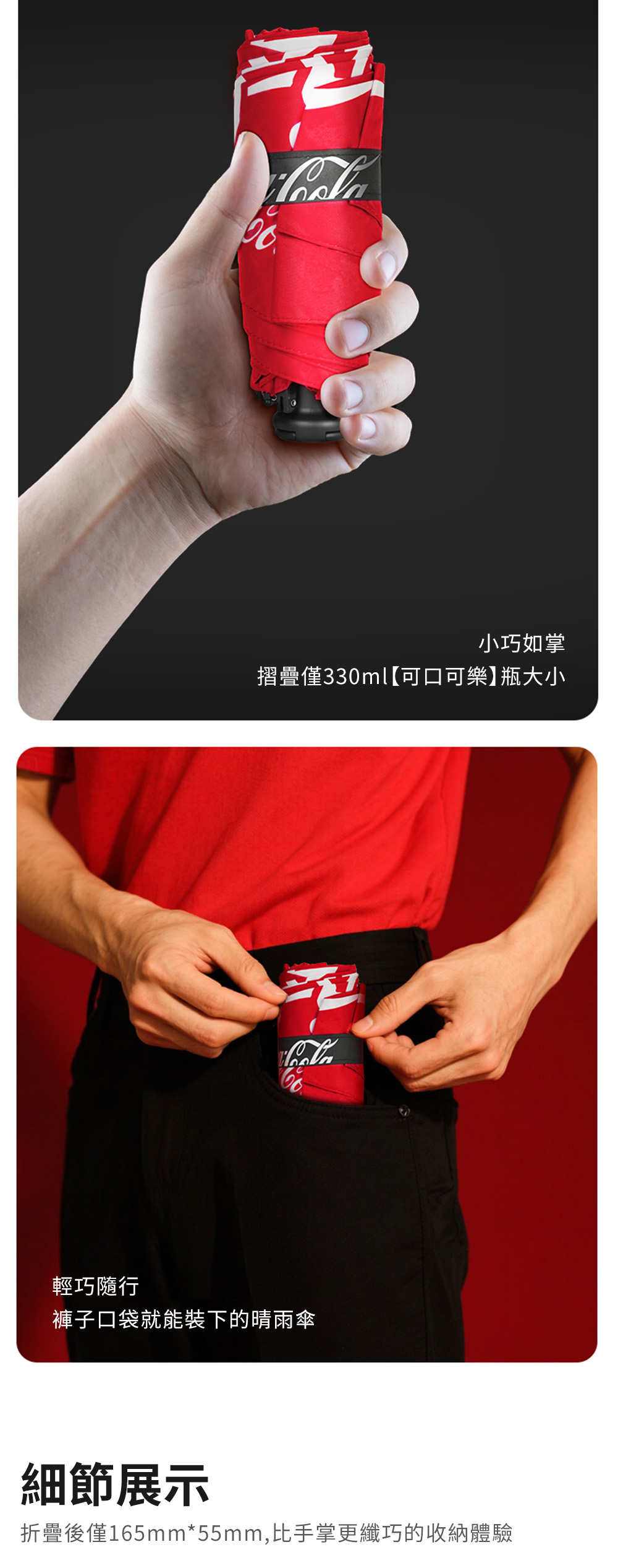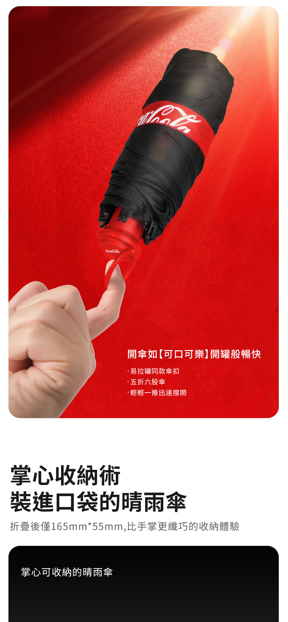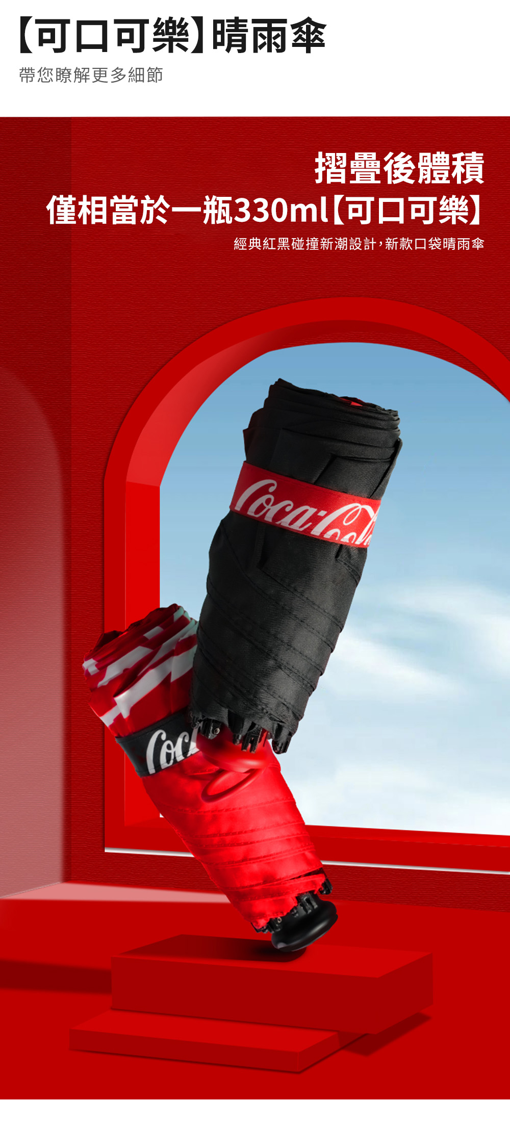 【Coca-Cola 可口可樂】經典口袋晴雨傘輕巧折疊防潑水隨身雨傘