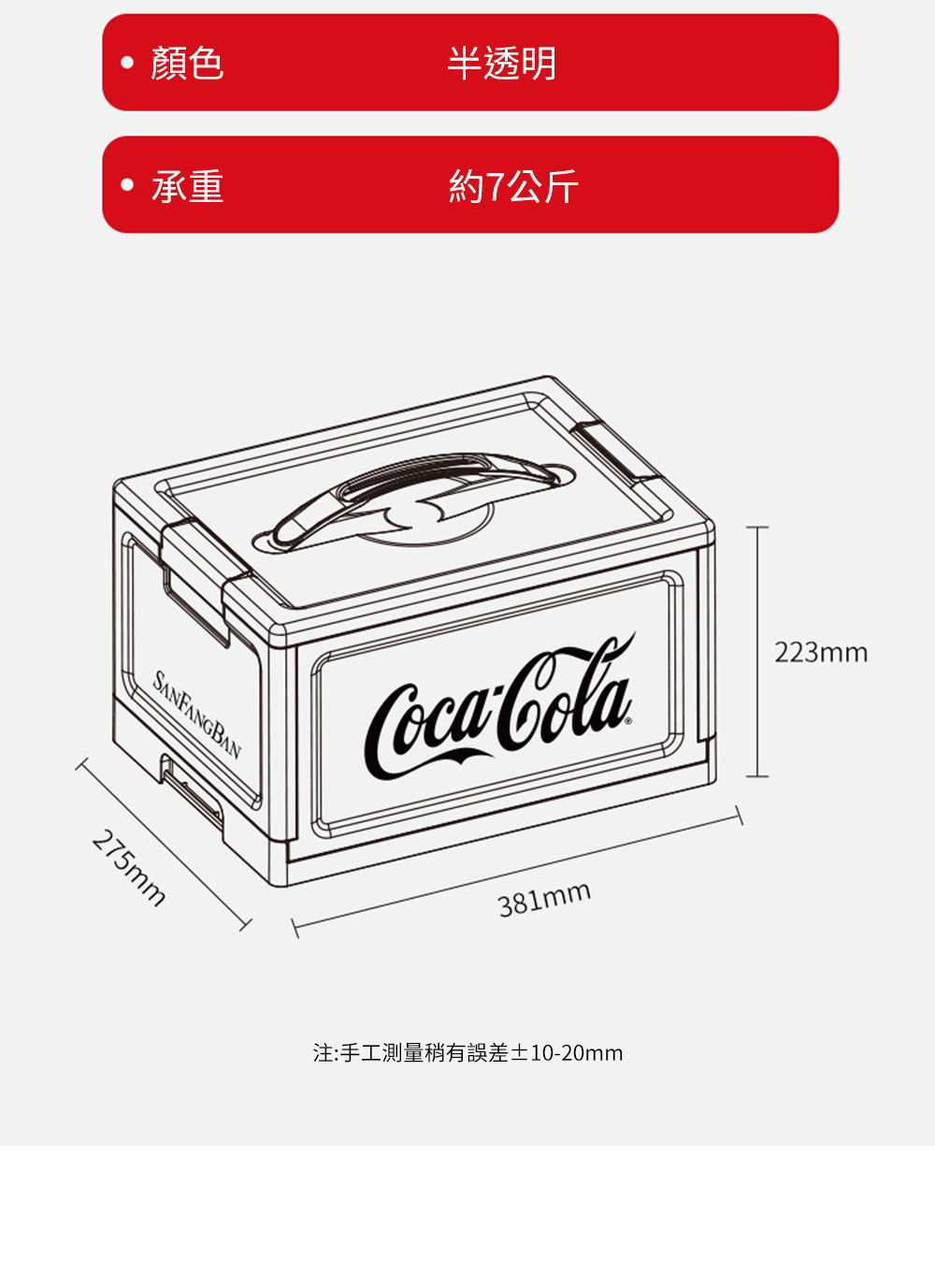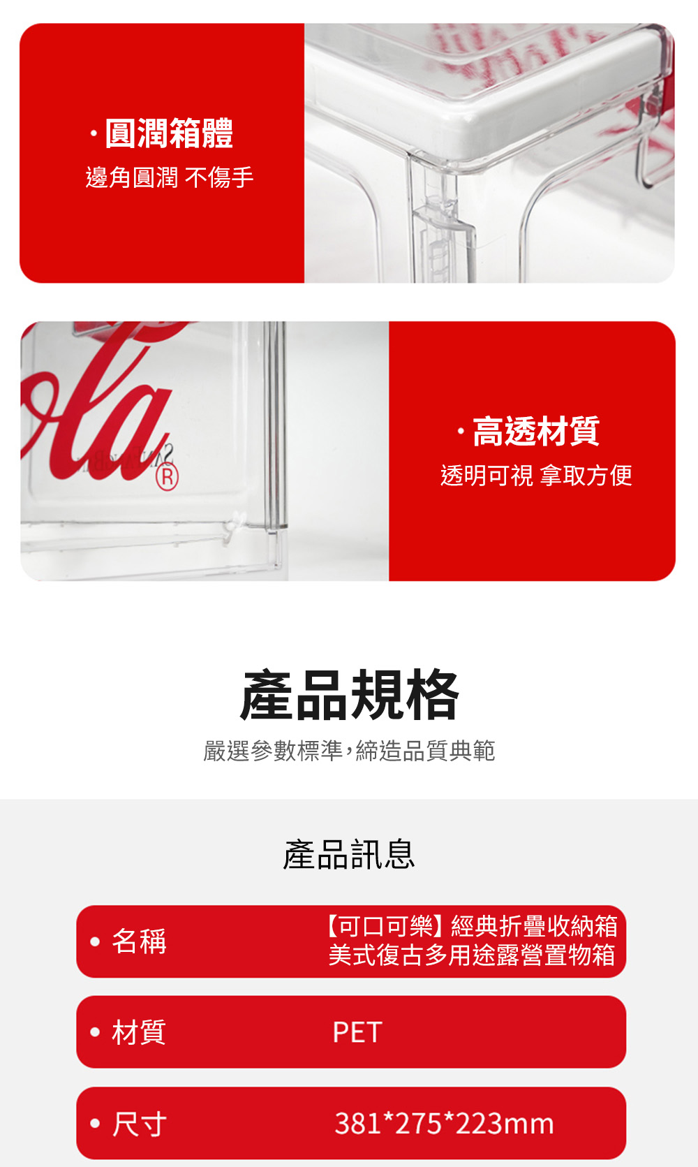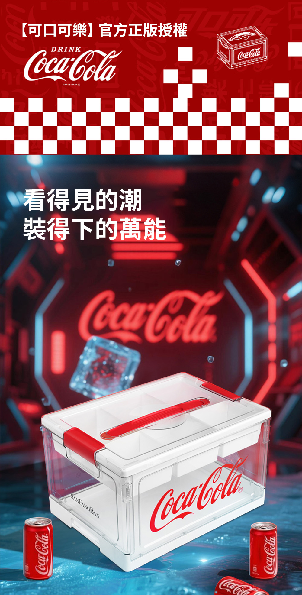 【Coca-Cola 可口可樂】品牌經典折疊收納箱美式復古多用途露營置物箱