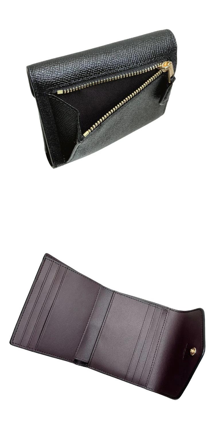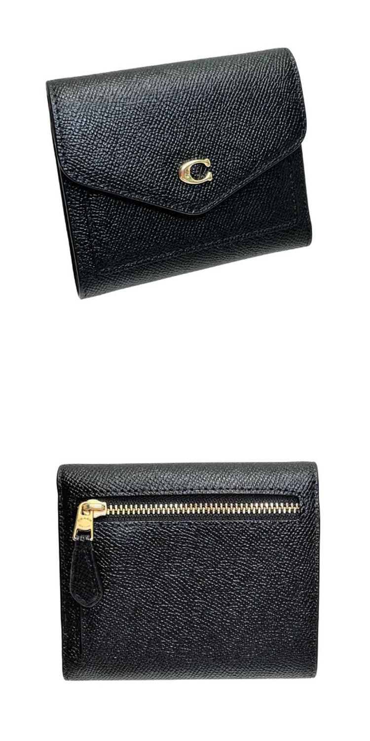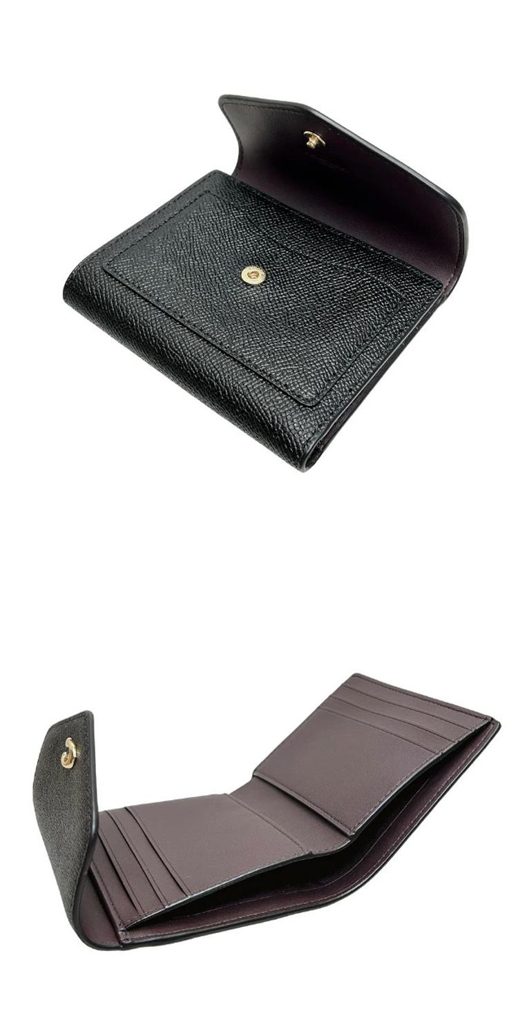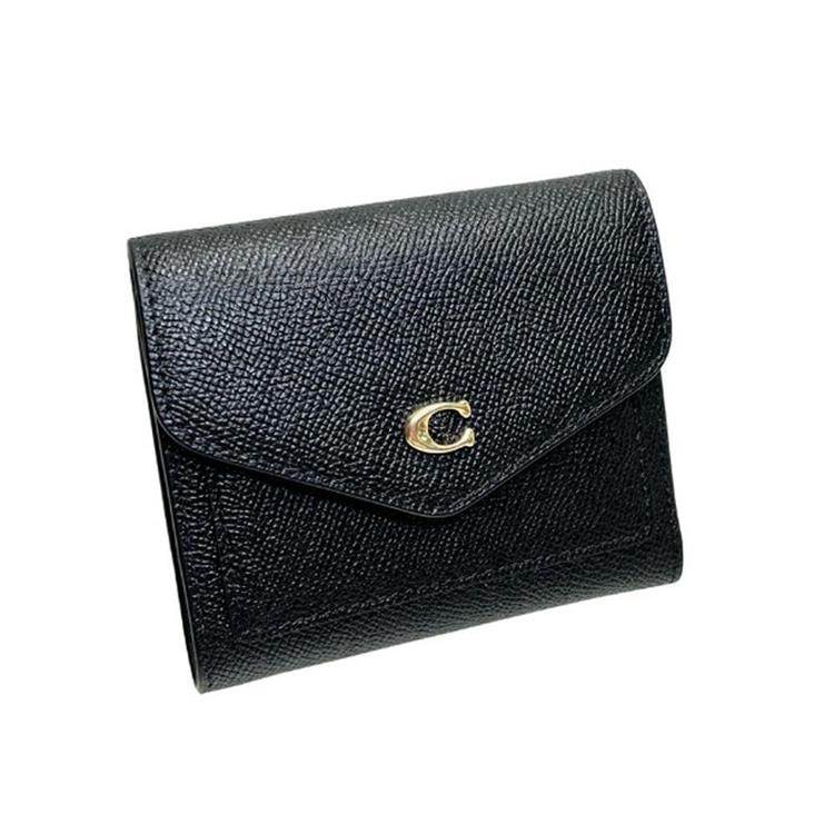 COACH 專櫃款十字紋素色按釦短夾-黑色