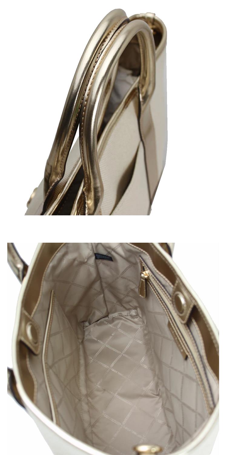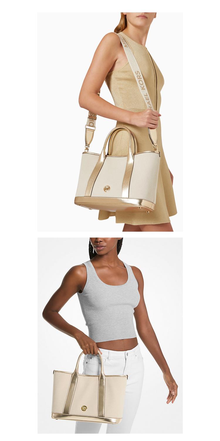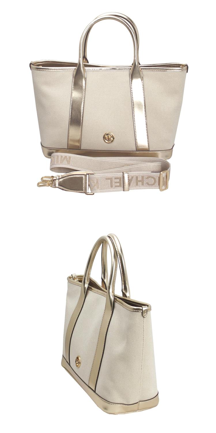 MICHAEL KORS 帆布中款兩用托特包-米白/金