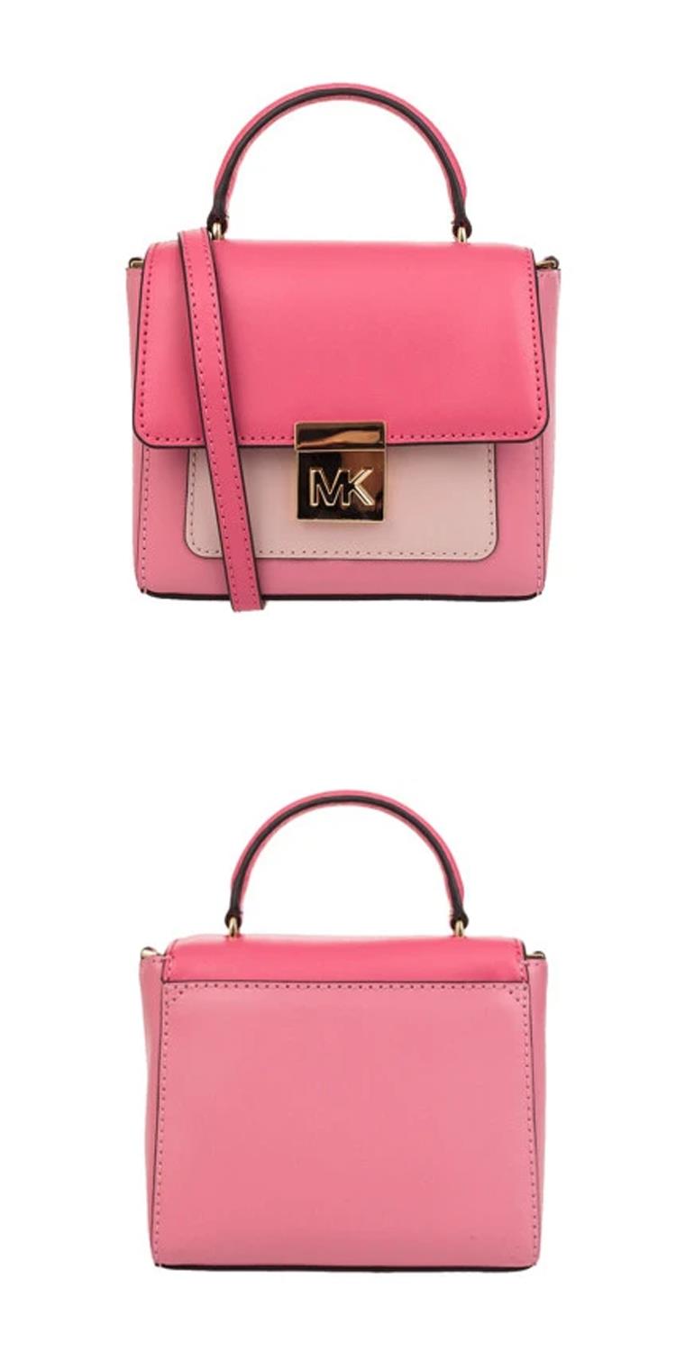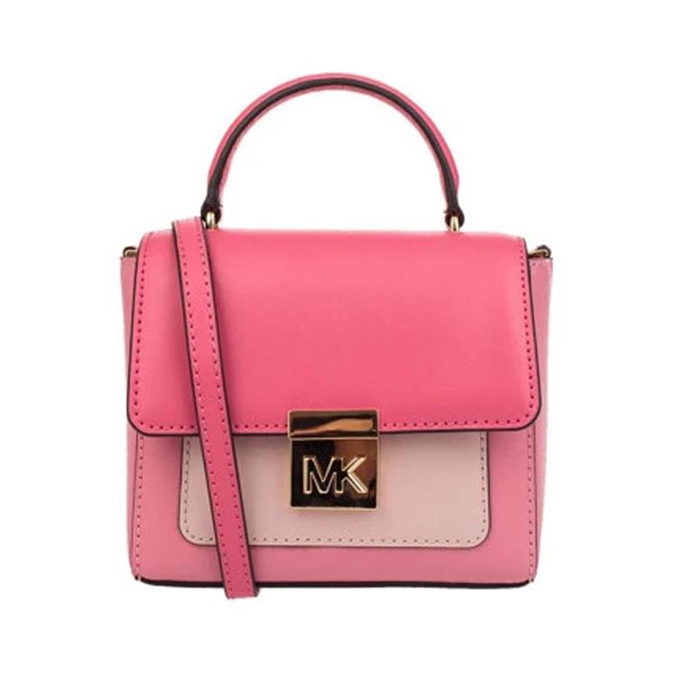 MICHAEL KORS 牛皮皮革方型翻蓋斜背包-玫粉