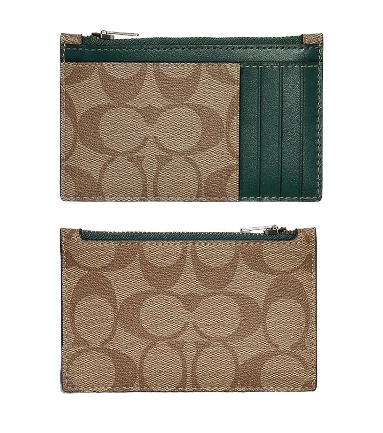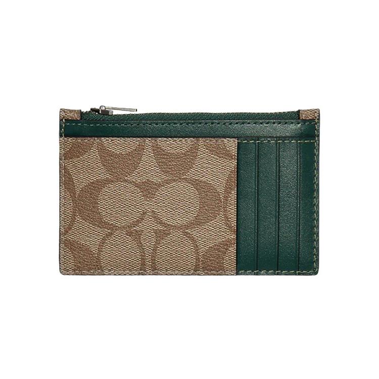 COACH 滿版LOGO拼接卡片零錢夾-卡其綠