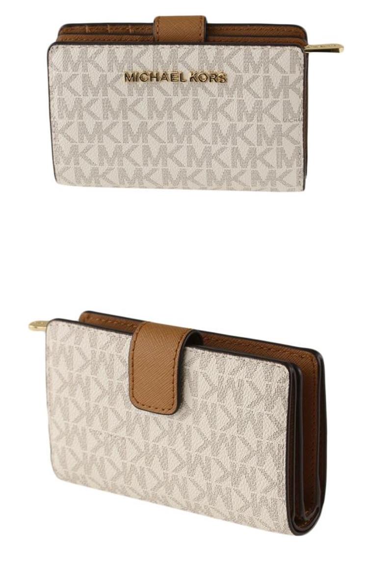 Michael Kors 防刮皮革釦式滿版中夾-香草白