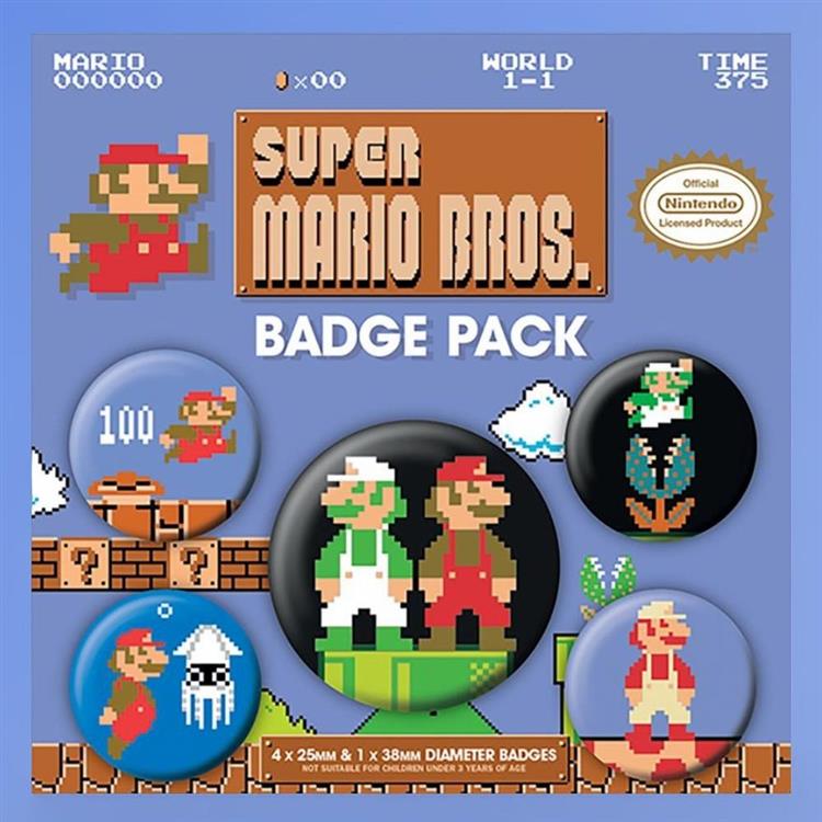 【Paladone UK】任天堂 超級瑪利歐 懷舊像素徽章組-5入