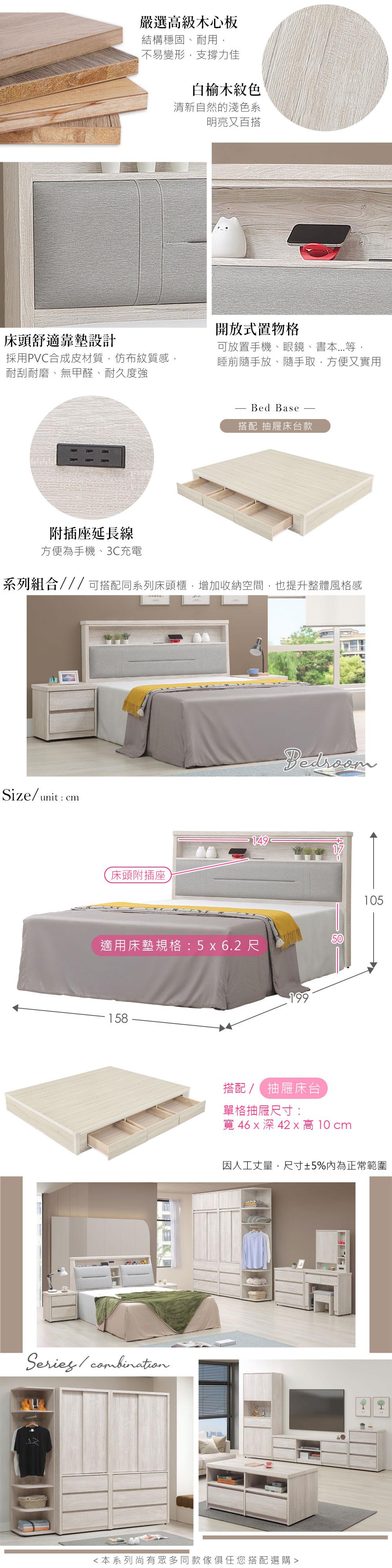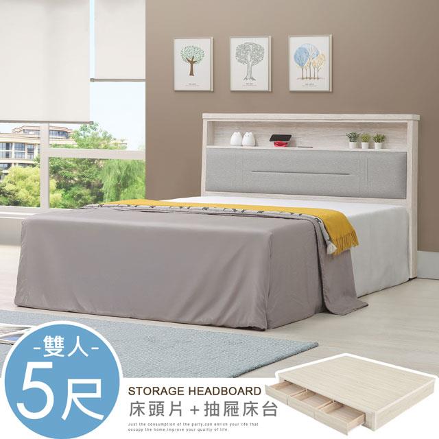 喜家居雙人5尺床片六抽屜床組-附插座(2541)