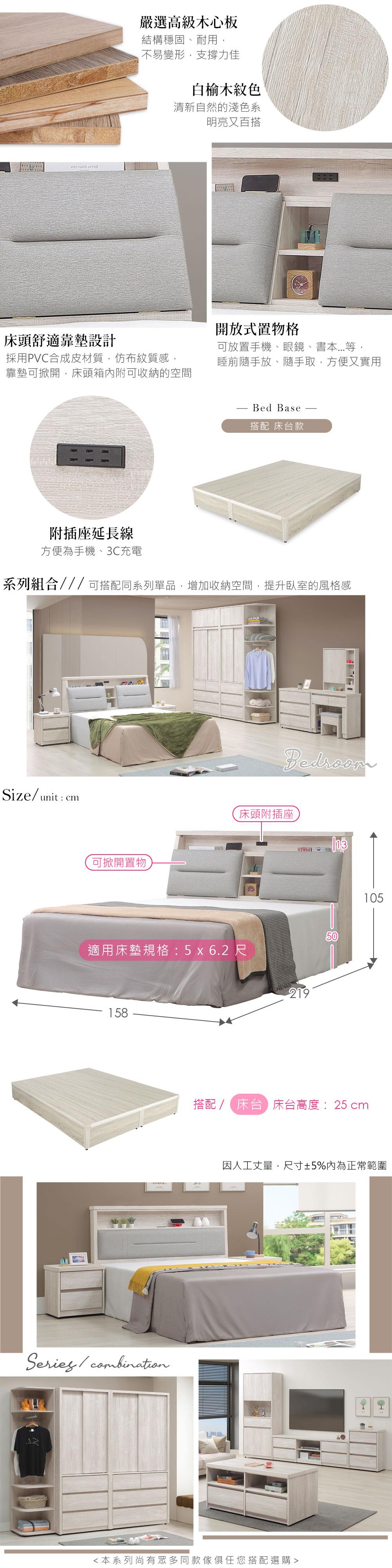 整組商品:床頭箱 x 1 + 床台 x 1 (不含床墊)