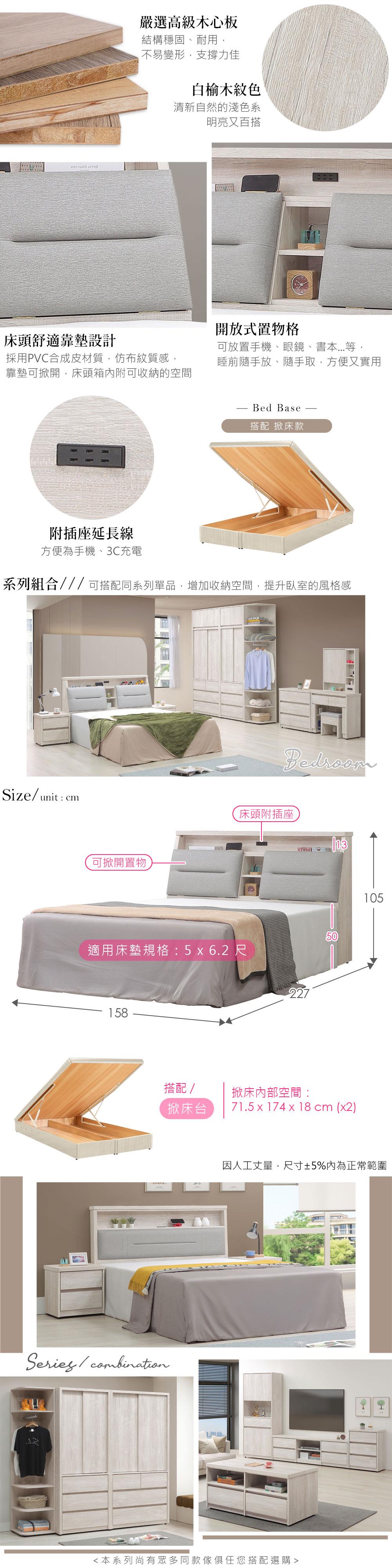 喜家居雙人5尺收納掀床組-附插座(2541)