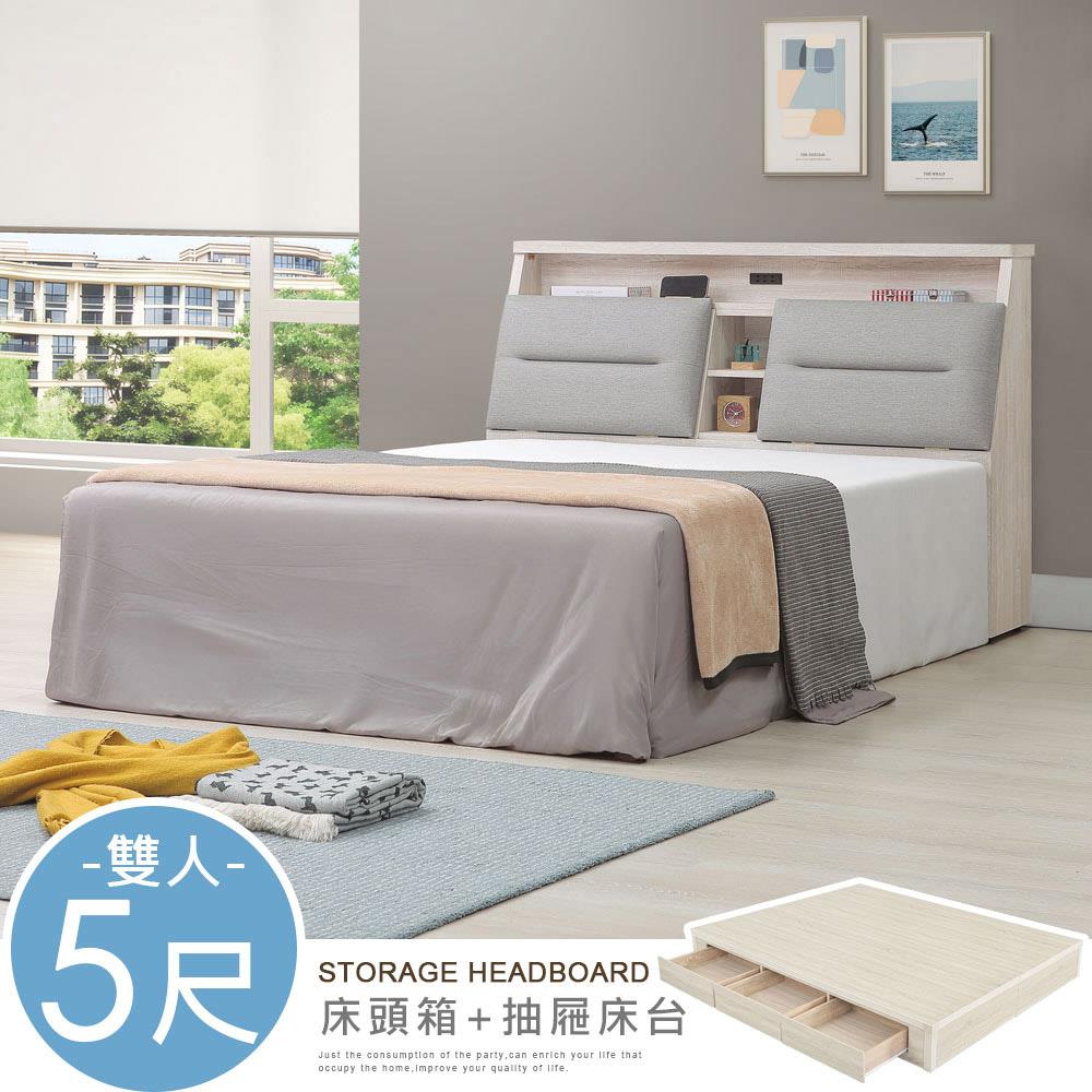 喜家居雙人5尺收納六抽屜床組-附插座(2541)