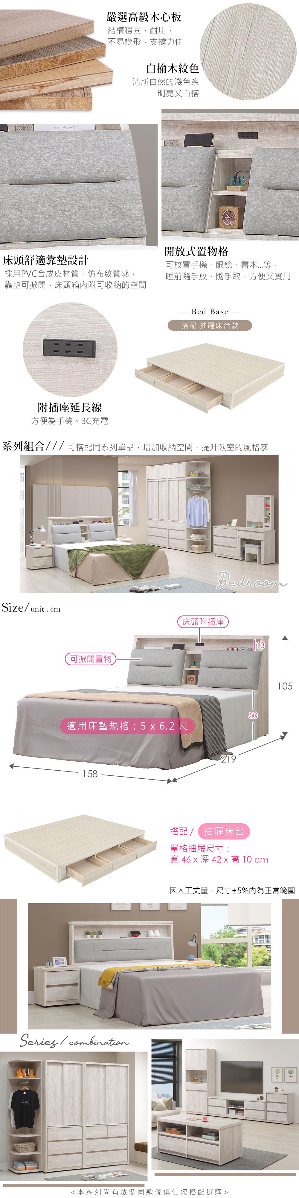 整組商品:床頭箱 x 1 + 抽屜床台 x 1 (不含床墊)
