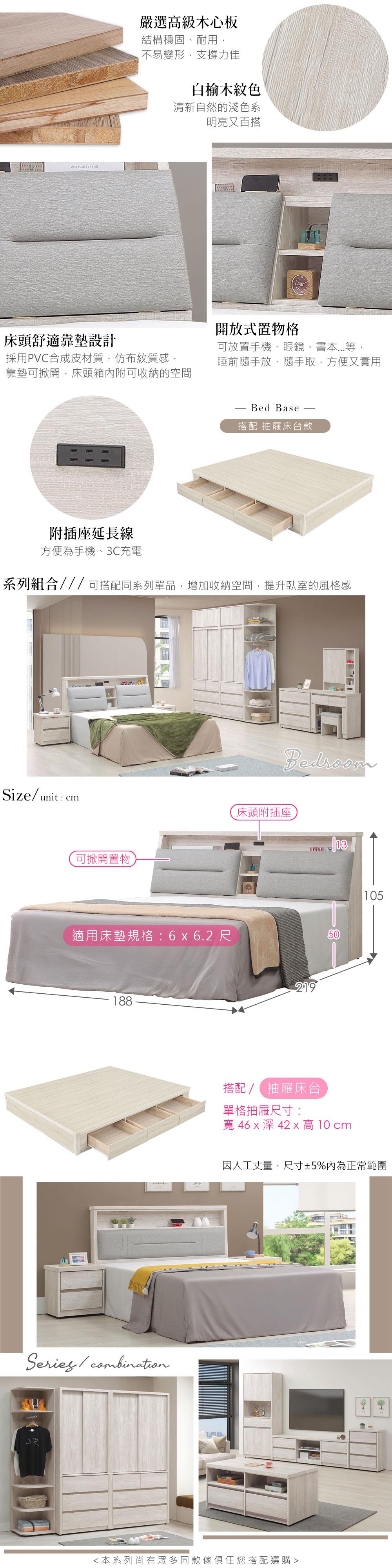 整組商品:床頭箱 x 1 + 抽屜床台 x 1 (不含床墊)