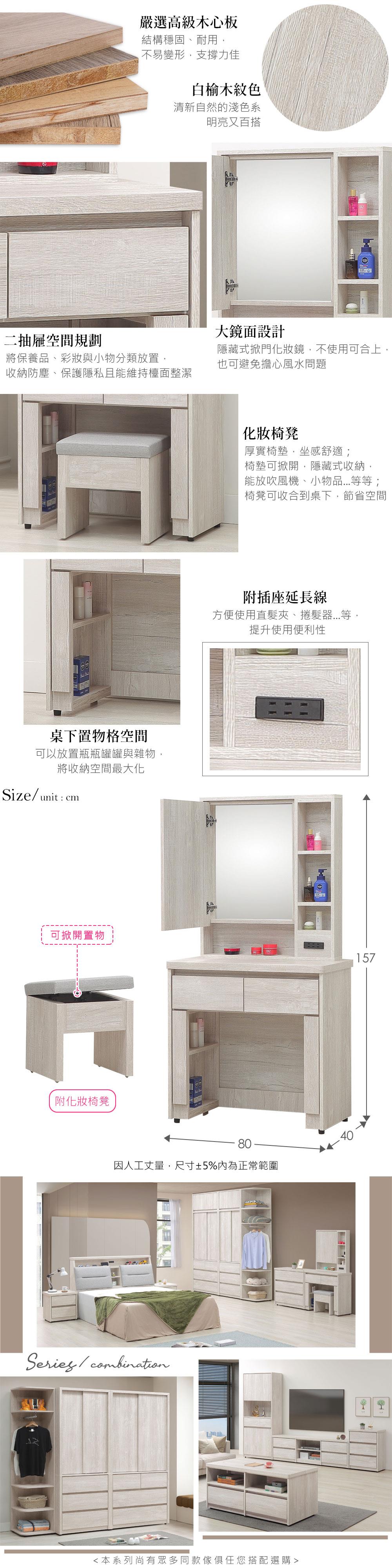 喜家居2.7尺化妝桌椅組-附插座(2541)