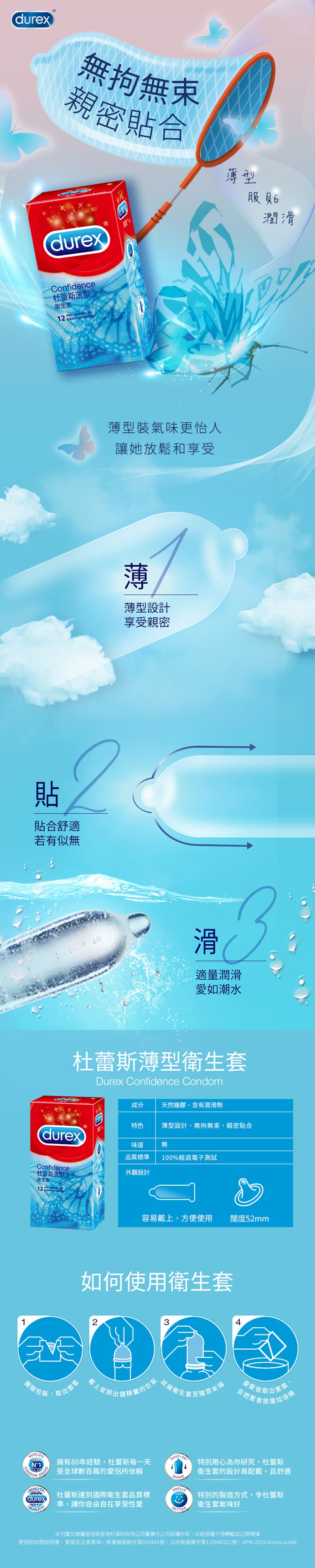 【Durex 杜蕾斯】薄型裝衛生套12入