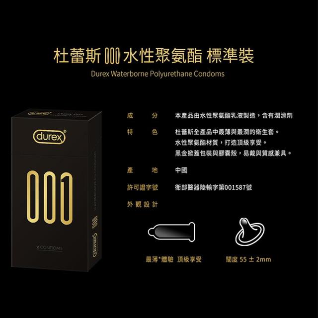 【Durex 杜蕾斯】杜蕾斯001水性聚氨酯標準裝保險套10個/盒