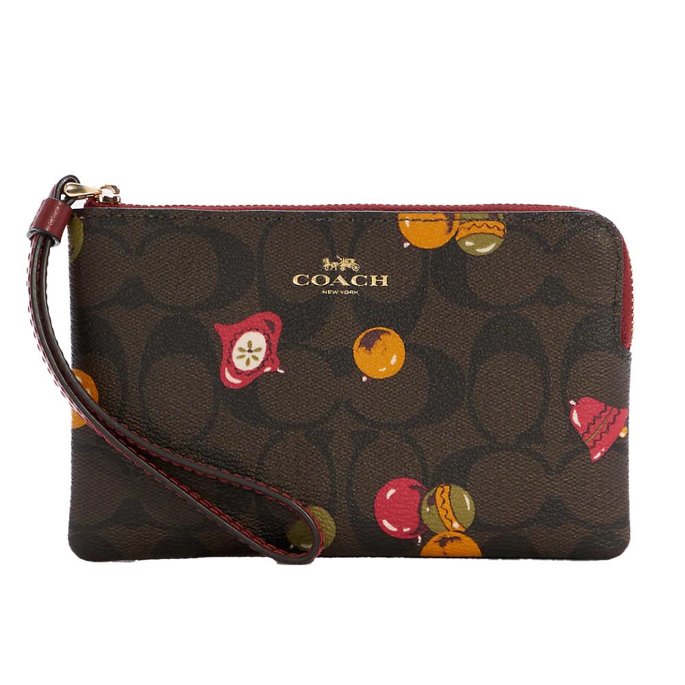 COACH 印花皮革L型拉鍊手拿包-咖啡紅