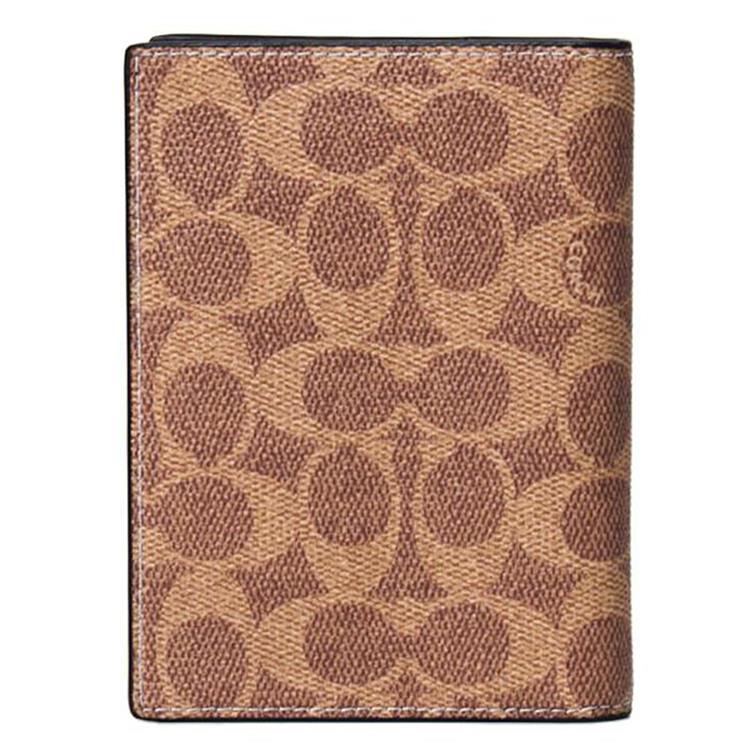 COACH 滿版LOGO卡片零錢夾-卡其咖